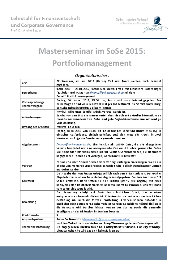 1. Lehrstuhl für Finanzwirtschaft und Corporate Governance